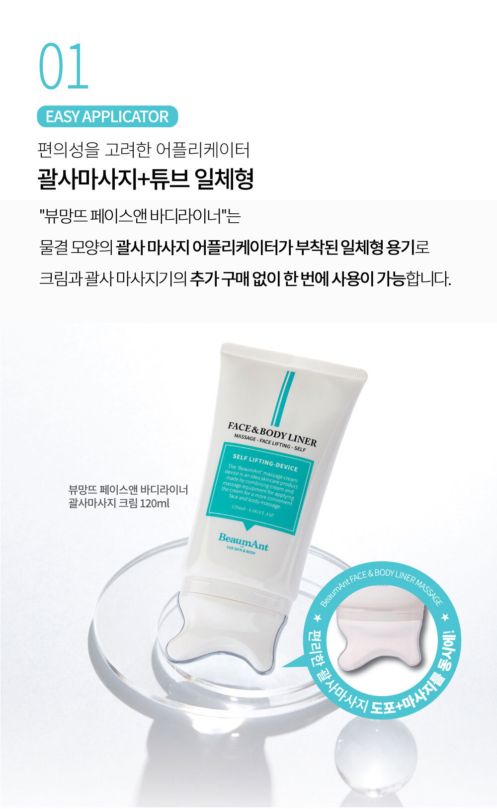 BeaumAnt 뷰망뜨 셀프괄사 세라믹괄사 + 페이스앤 바디라이너 120ml 1SET /괄사+콜라겐크림 일체형