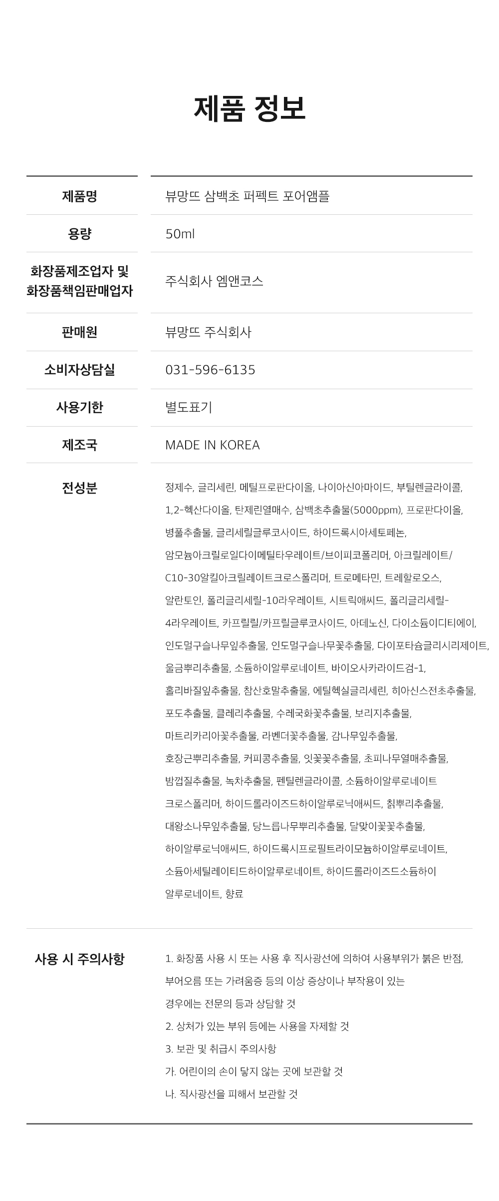 BeaumAnt 뷰망뜨 삼백초 퍼펙트 모공 앰플 50ml